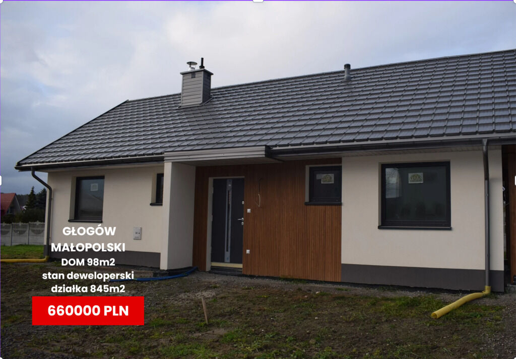 OFERTA DOMU ENERGOOSZCZĘDNEGO 98m2 W OKOLICY GŁOGOWAMAŁOPOLSKIEGO-STAN DEWELOPERSKI.