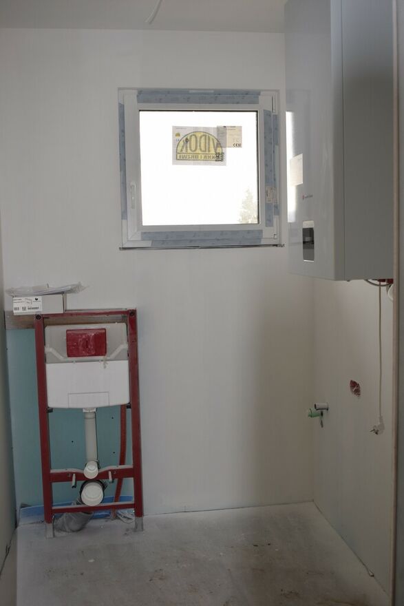 wykonano instalację grzewczą podłogową, oraz zamontowano piec