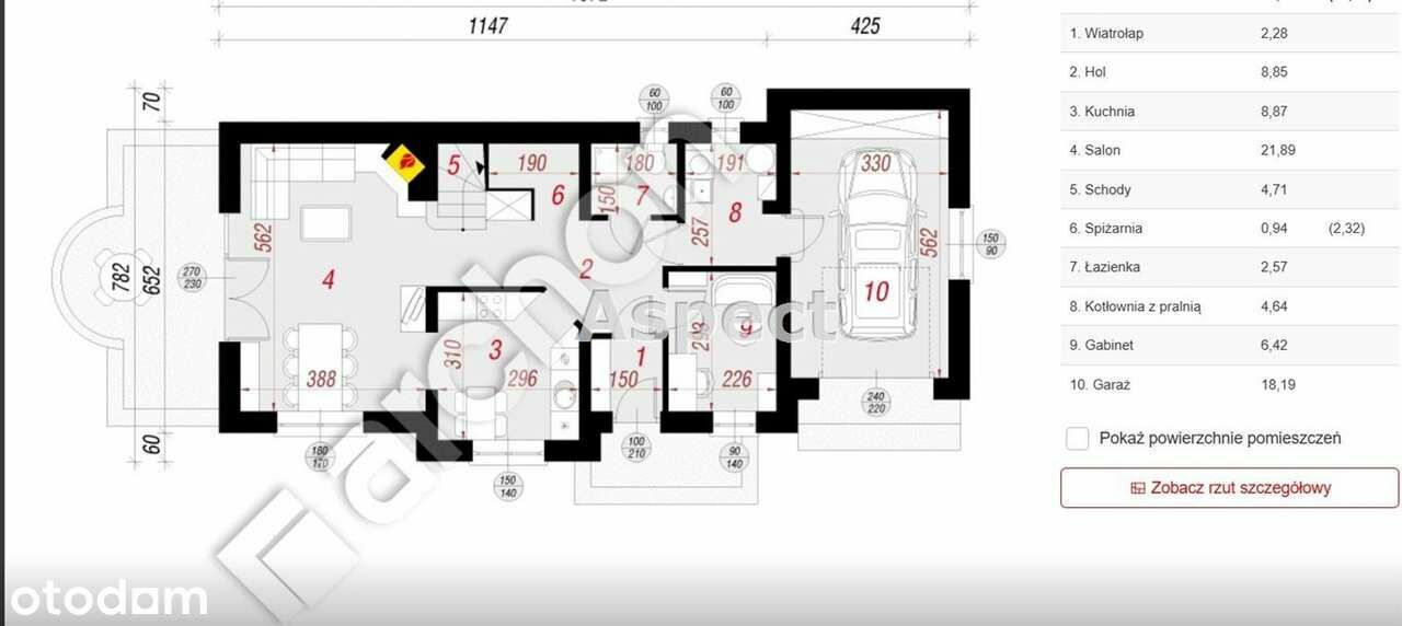 powierzchnia działki 465 m2.