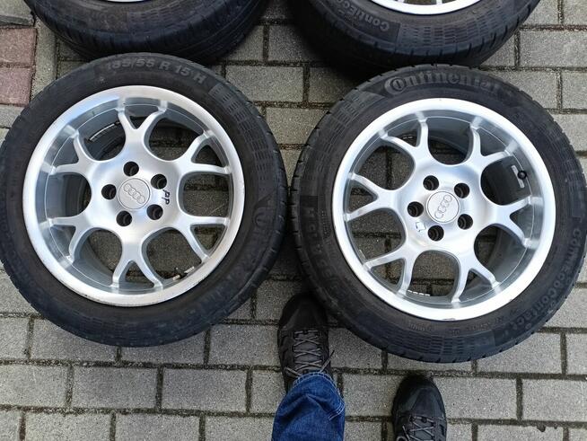 Felgi 15 z audi a3 dystanse w zestawie i pasują do a2 5x100 7Jx15h2 z oponami Continental które mają swoje lata ale ...